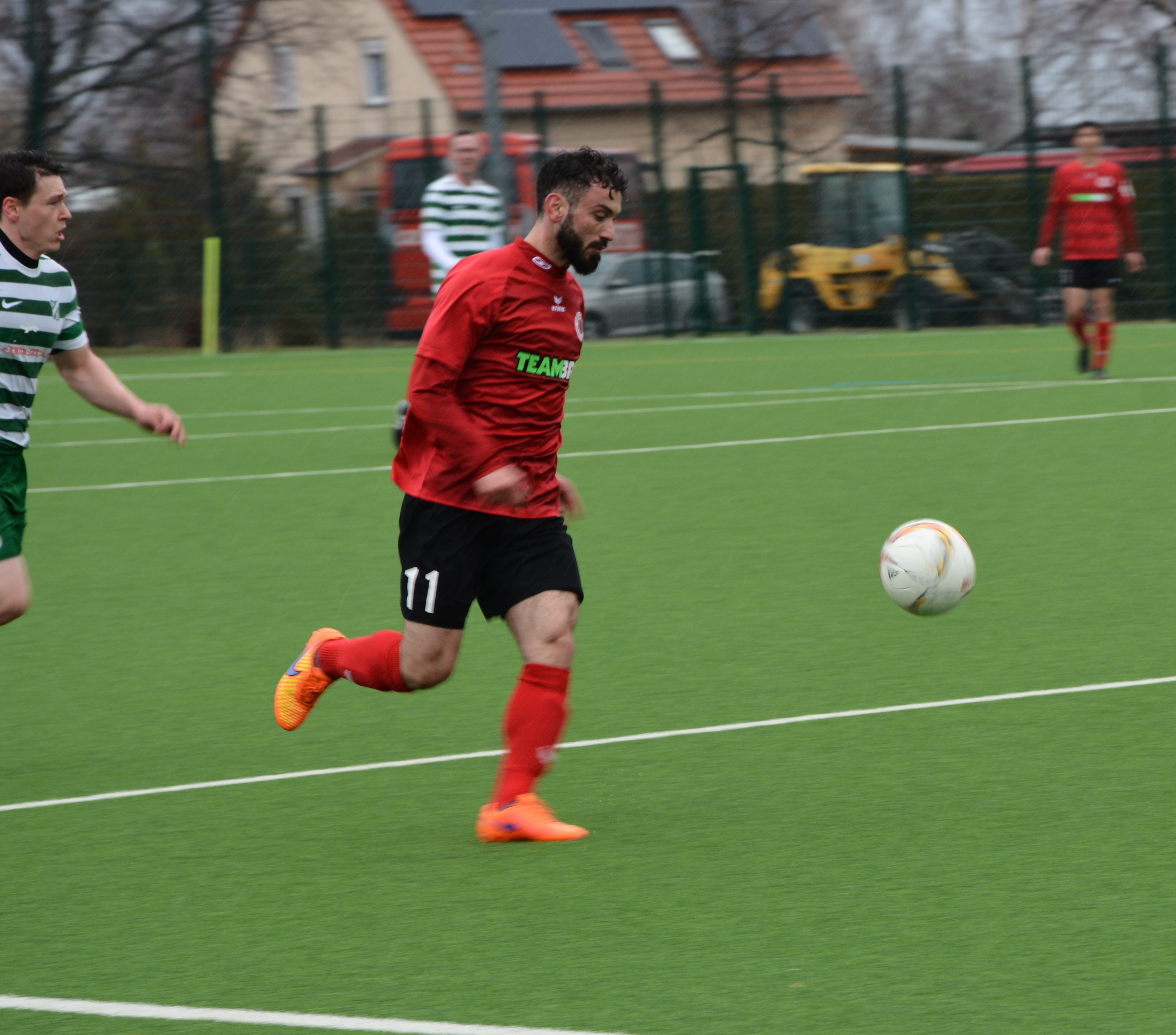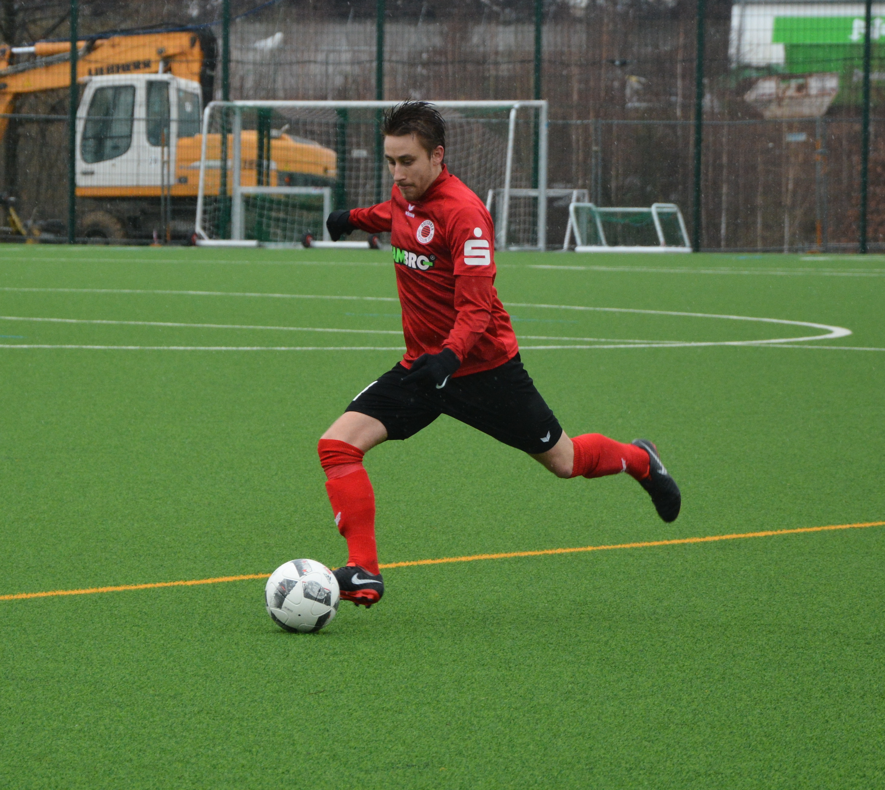 Bei strömenden Regen haben die Hausherren die erste Möglichkeit der Partie. Nach einem Pass von der linken Seite kommt Hans Hähnel zum Abschluss, setzt den Ball allerdings neben das Tor. Die Schwarz-Mohnroten haben mehr vom Spiel, rennen aber gegen einen tief stehenden Gegner an. Nach einer Viertelstunde hat Ahmad Ismael die erste Möglichkeit für den DSC. Nach Pass von Olaf Sieradzki hebt Ismael den Ball über herauseilenden Torwart, verfehlt allerdings auch das Gehäuse. In der 25. Minute verlieren die DSC´ler im Aufbauspiel den Ball. Steve Schurzky sucht sofort den Abschluss, sein Schuss geht aber rechts unten vorbei. Der Sportclub bestimmt weiter das Geschehen und kommt besonders über die starke rechte Seite zu guten Offensivaktionen. Folglich wird über diese Seite auch der Führungstreffer in der 37. Spielminute eingeleitet. Nach Flanke kommt Ahmad Ismael frei zum Schuss. Torwart Christian Achtzehn kann den Ball nur nach vorne abwehren. Daniel Forgber setzt gut nach und bringt das Leder im Netz unter. Drei Minuten vor der Halbzeit kommt man wieder mit einem schnellen Spielzug über die rechte Seite zum Erfolg. Erik Wutschke passt mit viel Übersicht in den Rücken der Abwehr, wo Ahmad Ismael mit einem flachen Schuss zum zweiten Tor des Tages trifft. So geht es mit einer 2:0 Führung in die Kabinen.