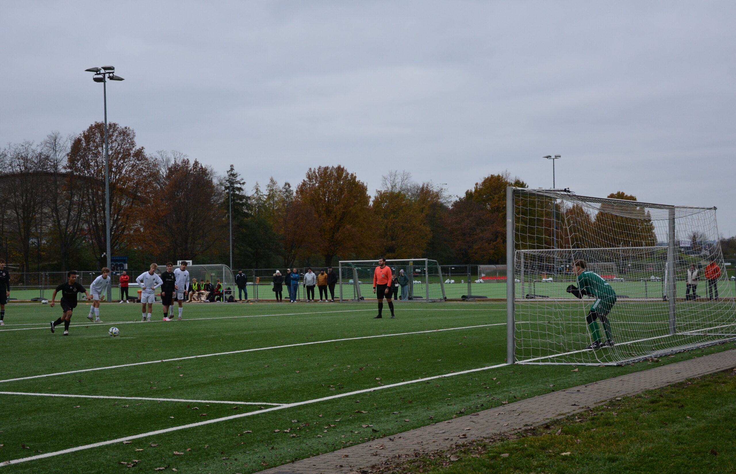 Nach den ersten 10 ereignislosen Minuten kommt die U17 besser in das Spiel und besitzt die erste Möglichkeit. Ein Schuss auf das kurze Eck von Theodor Achtnicht lenkt Gästetorhüter Johann Wolter zur Ecke. Nur eine Minute später fällt die Führung für den DSC. Eine Flanke von der rechten Seite verwertet Kapitän Liam Nestler per Fuß zum 1:0. In der 21.Minute ist Torhüter Wolter unsicher und vertändelt den Ball. Theodor Achtnicht kann daraus aber keinen Nutzen ziehen. Nach 23 Minuten wird Eyouel Thiel im Strafraum zu Fall gebracht und der Schiedsrichter zeigt folgerichtig auf den ominösen Punkt. Der Gefoulte tritt selber zum Elfmeter an und verwandelt sicher. Nur drei Minuten später schnürt Eyouel Thiel einen Doppelpack. Nach einer Ecke ist er zur Stelle und vollendet zur 3:0-Führung. Die Schwarz-Roten haben das Spiel unter Kontrolle und erst kurz vor der Halbzeit kommen die Leipziger zu ihrer ersten Tormöglichkeit. Ein als Flanke gedachter Ball von Hugo Sawetzki senkt sich in Richtung Tor. Doch Schlussmann Anton Konta ist auf dem Posten und lenkt den Ball über die Latte. So geht es mit dem 3:0 in die Pause.