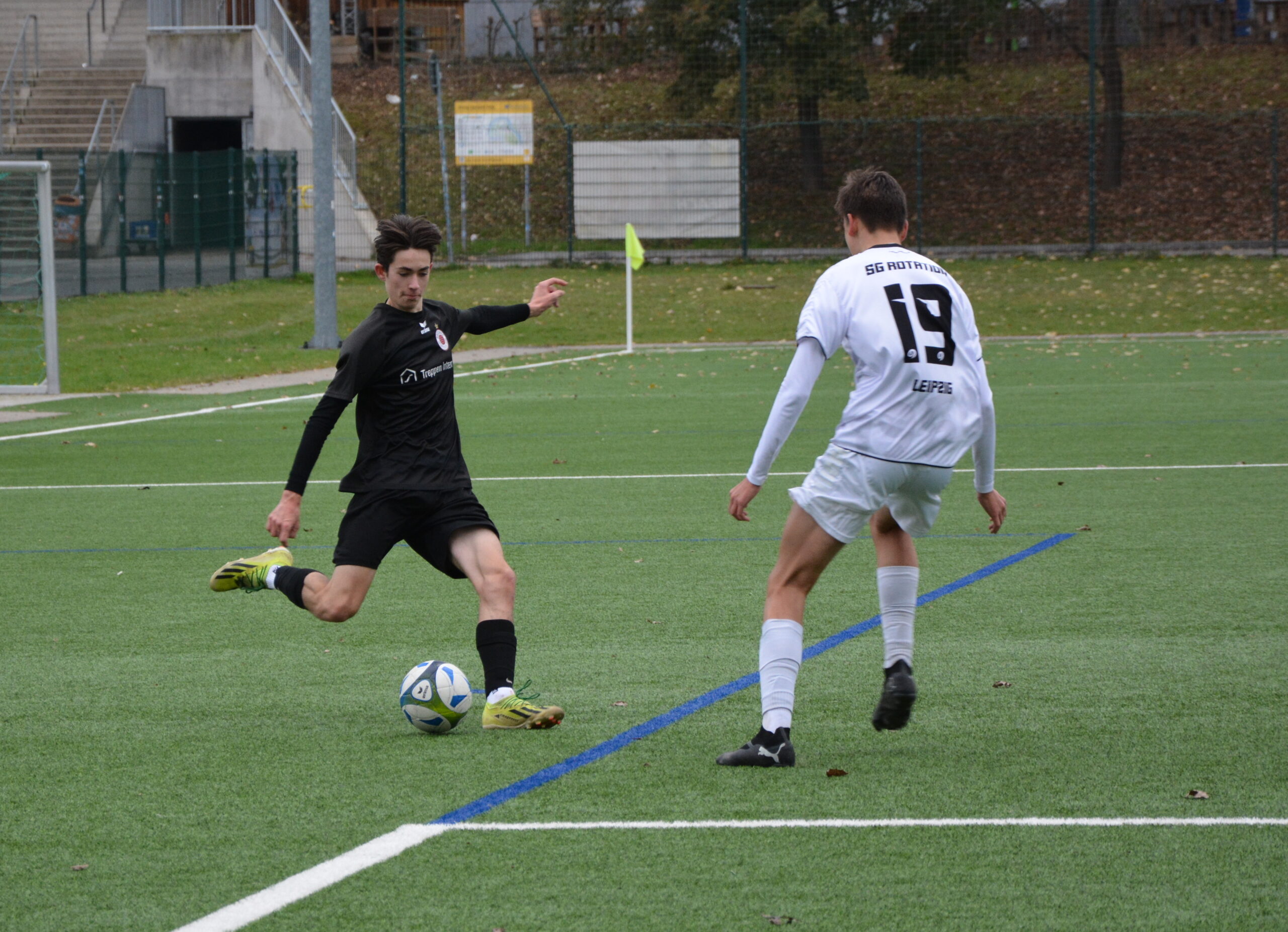 Nach zuletzt vier Pflichtspielniederlagen punktet die B-Jugend am 12.Spieltag der Landesliga wieder dreifach. Gegen das Schlusslicht SG Rotation Leipzig setzt man sich mit 4:1 durch. Für den Sportclub trifft Eyouel Thiel doppelt sowie Liam Nestler und Constantin Neumann.