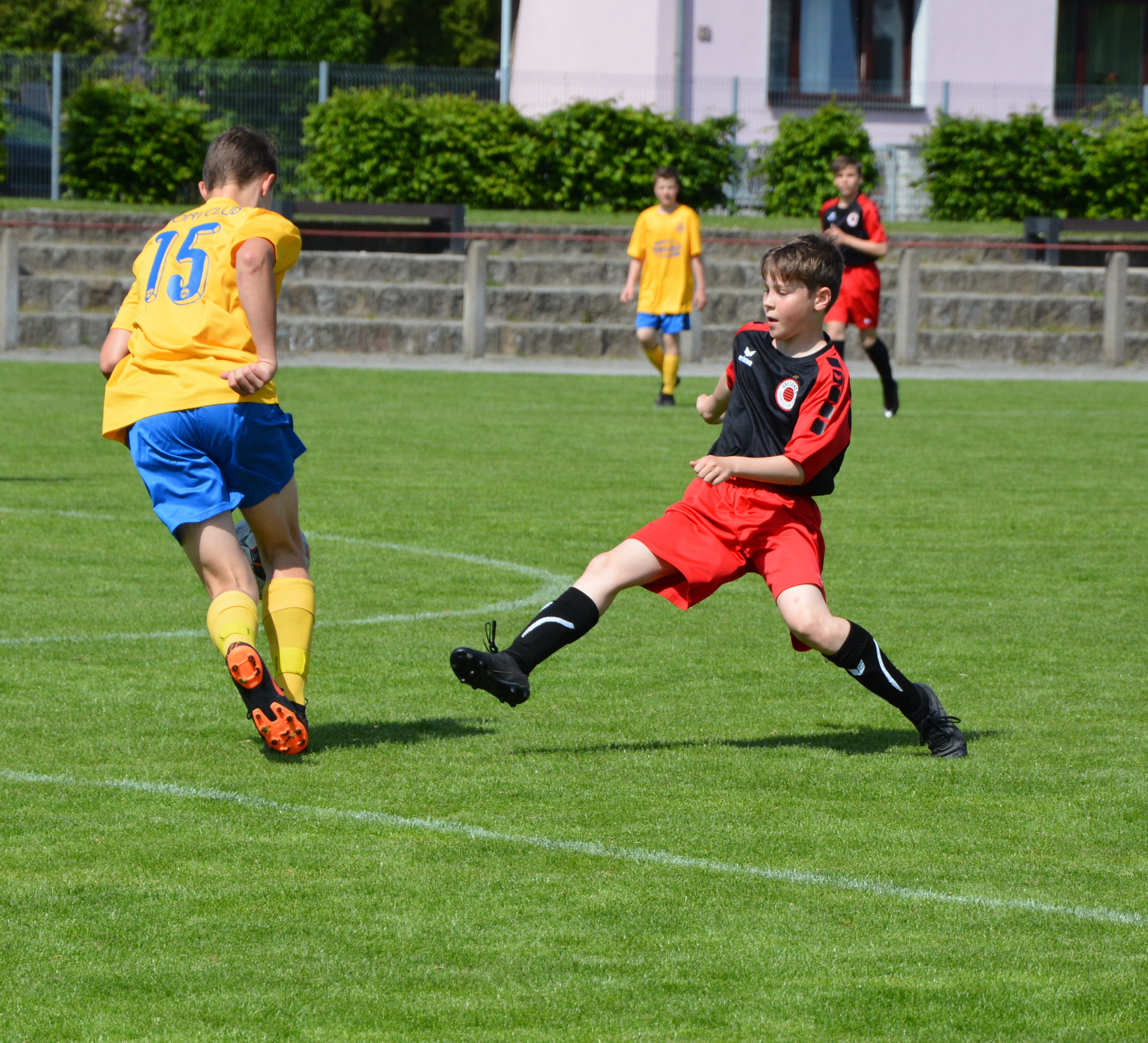 Zu einem ungefährdeten 5:0 Auswärtserfolg kommt die U15 des DSC beim SC 1911 Großröhrsdorf. Gegen den Tabellenletzten bestimmen die Schwarz-Mohnroten von Anfang an das Spielgeschehen und gehen nach einer Viertelstunde in Führung. Nach feinen Pass von Felix Otto zieht Kapitän Martin Brauner von der Strafraumgrenze flach ab und trifft zum 1:0. Nur sechs Minute später kann Paul Hamann auf 2:0 erhöhen. Nach einem langen Ball ist Hamann allein vor dem Tor und schiebt das Leder zum zweiten Treffer des Tages ins Netz. Auch in der zweiten Halbzeit geht das Spiel nur in Richtung des Tores von Großröhrsdorf. Mit einem Sololauf erhöht Luis Csaszar in der 50.Spielminute auf 3:0. Sechs Minuten später kann sich Paul Reichel in die Torschützenliste eintragen. Paul Hamann legt den Ball im Strafraum uneigennützig quer so dass Reichel nur noch ins leere Tor einschieben muss. Nach einigen vergeben Chancen der DSC´ler setzt Paul Hamann mit seinem zweiten Treffer den Schlusspunkt. Fünf Minuten vor Ende der Partie behält er vor Torhüter Mick Boden die Nerven, umkurvt diesen und vollendet zum 5:0 Endstand.