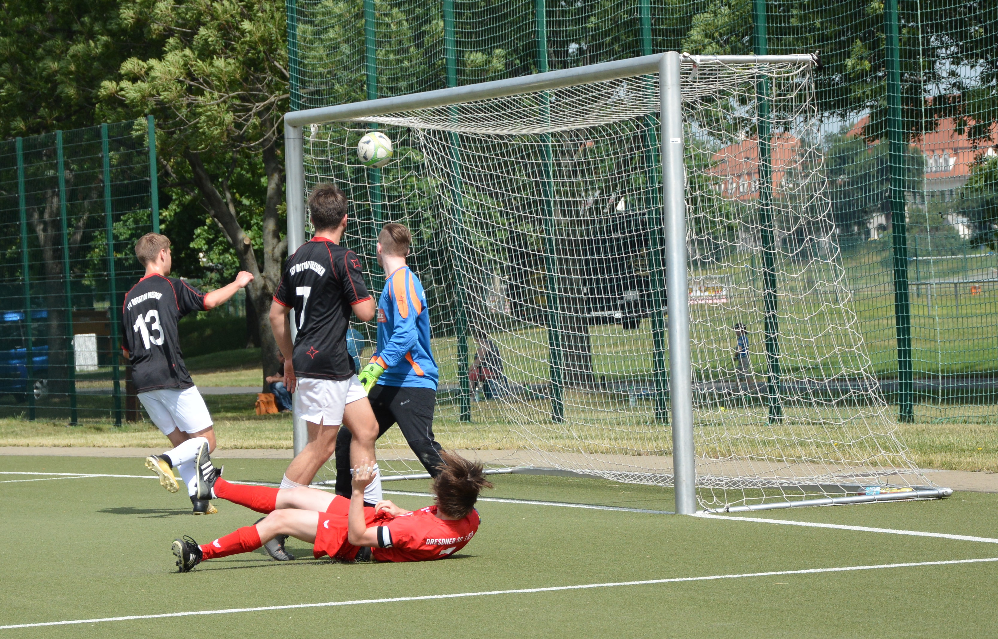 Trotz den Rückstandes gibt sich Rotation auch in der zweiten Halbzeit nicht auf und kommt 13 Minuten nach Wiederanpfiff zu ihrem Treffer. Moritz Nürnberger läuft allein auf das Tor zu und schiebt sicher zum 3:1 ein. Die Partie wird in der Folge ruppiger und beide Teams schenken sich nichts. Nach einer Stunde Spielzeit verhindert Stephan Apati mit zwei starken Paraden den Anschlusstreffer der Gäste. In der 68.min ist er aber dann machtlos. Nach einem Freistoß steigt Arian Köhler am höchsten und köpft zum 3:2 ein. Da dem Tabellenführer ein Unentschieden zum Gewinn der Meisterschaft gereicht hätte gibt es nochmal einen offenen Schlagabtausch, welcher zugunsten des Dresdner SC per Kunstschuss in der Nachspielzeit entschieden wird. Julius Brosche zieht an der Mittellinie ab und der Ball fliegt über den herausgeilten Torwart zum 4:2 Endstand ins Netz.