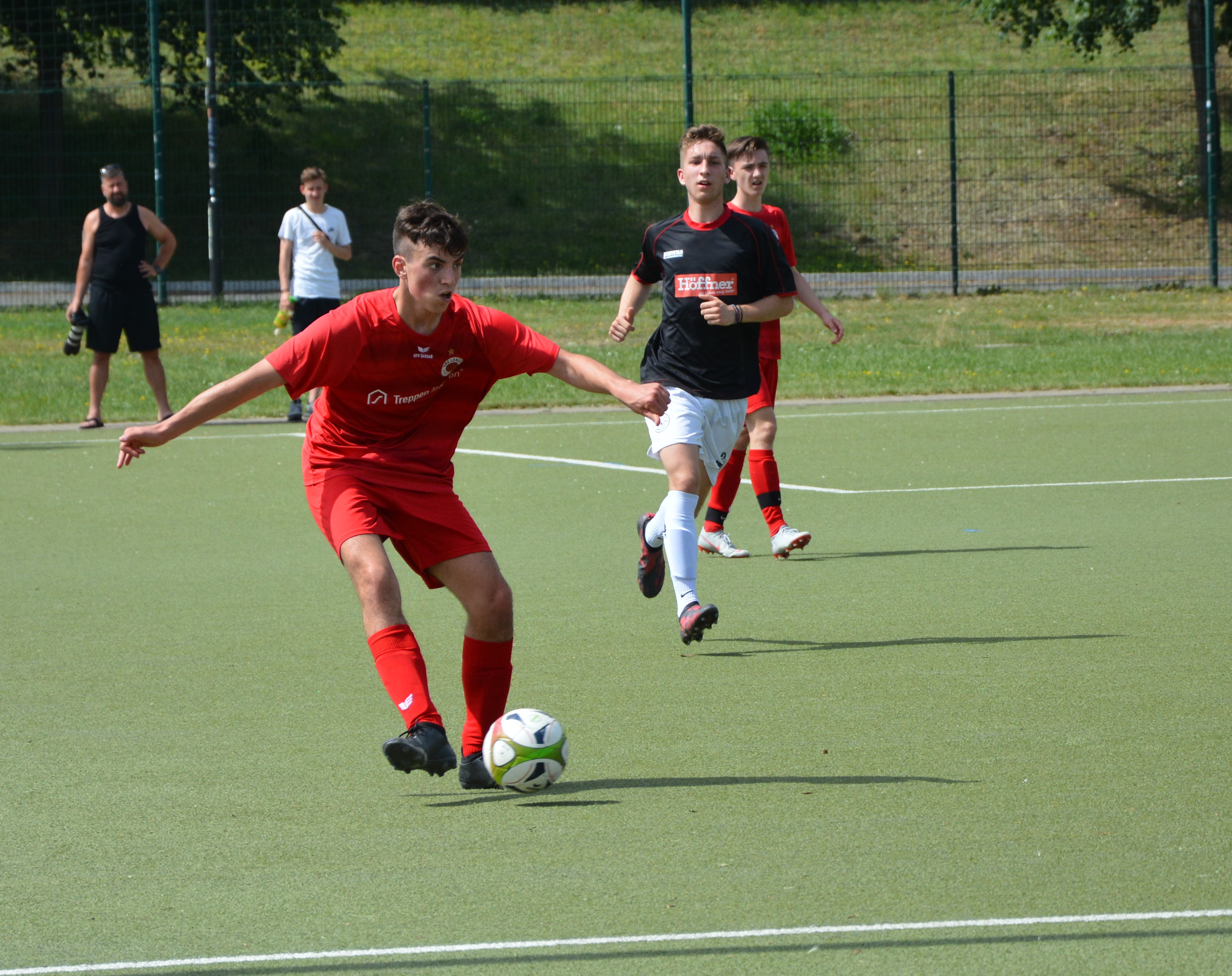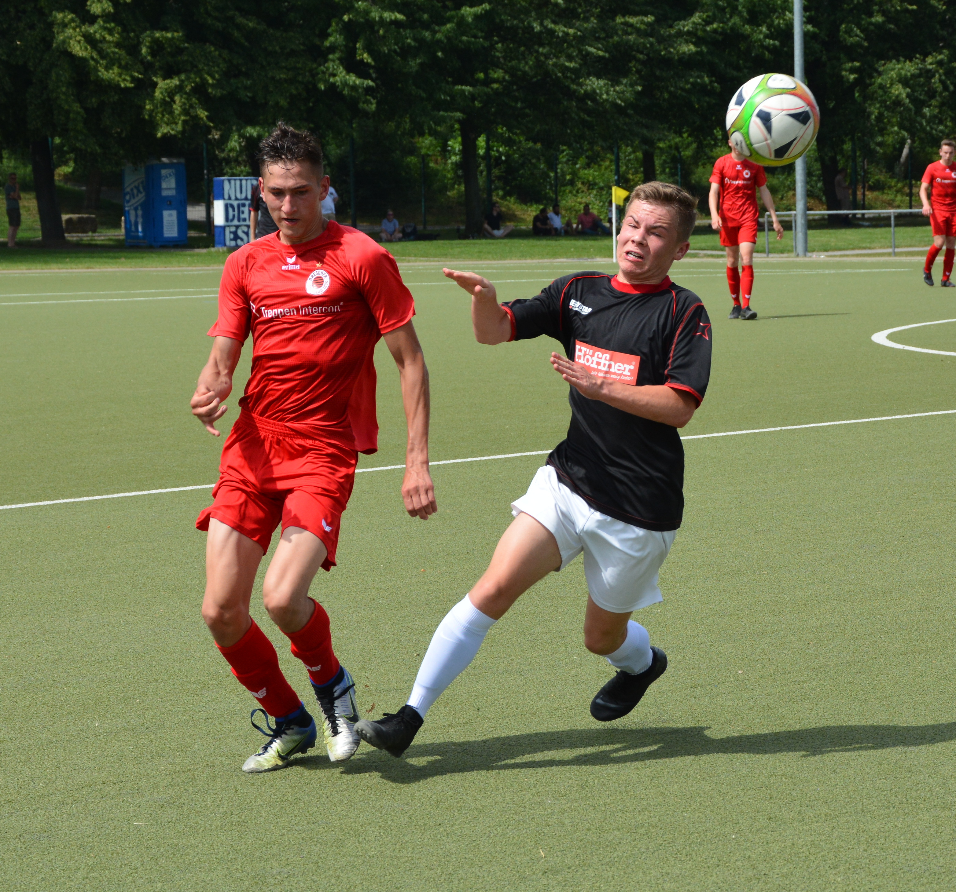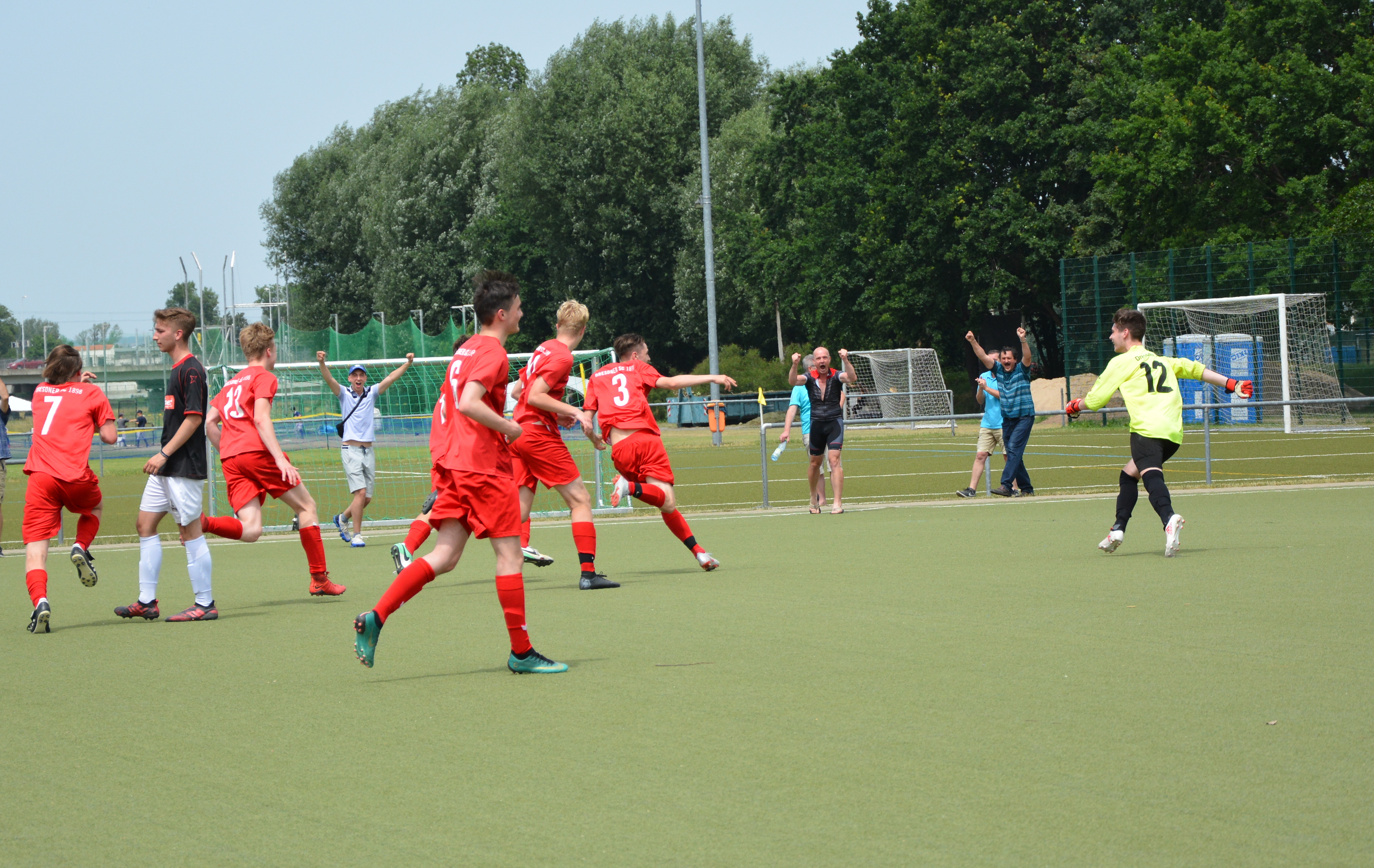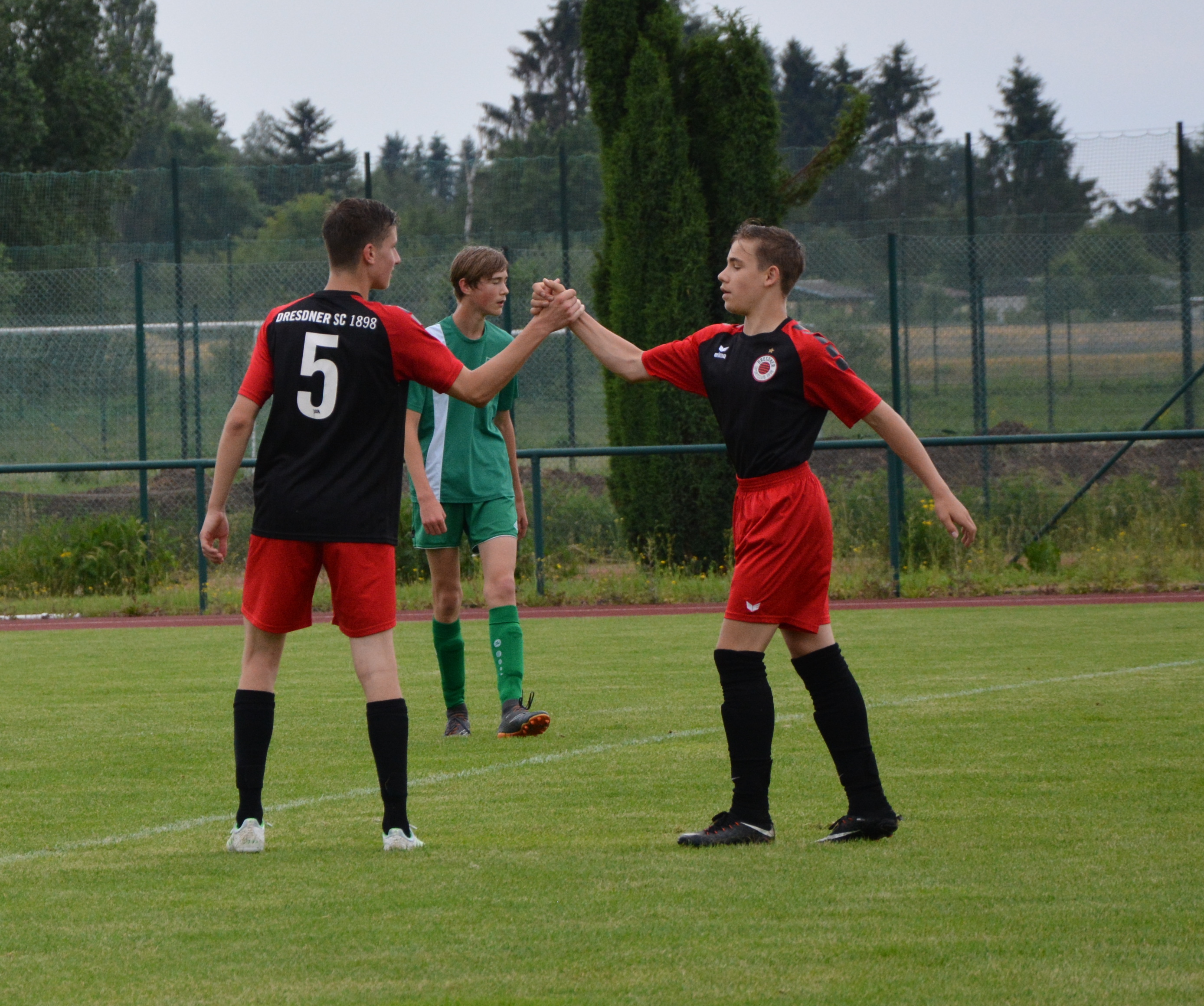 Die B-Jugend des Dresdner SC gewinnt am vorletzten Spieltag der Stadtoberliga das Spitzenspiel gegen den TSV Rotation Dresden mit 4:2 und wahrt damit weiter die Chance auf die Meisterschaft und den damit verbunden Aufstieg in die Landesklasse. Nach einer 3:0 Halbzeitführung können die Gäste auf 3:2 verkürzen. Julius Brosche sorgt in der Nachspielzeit dann für die Entscheidung.