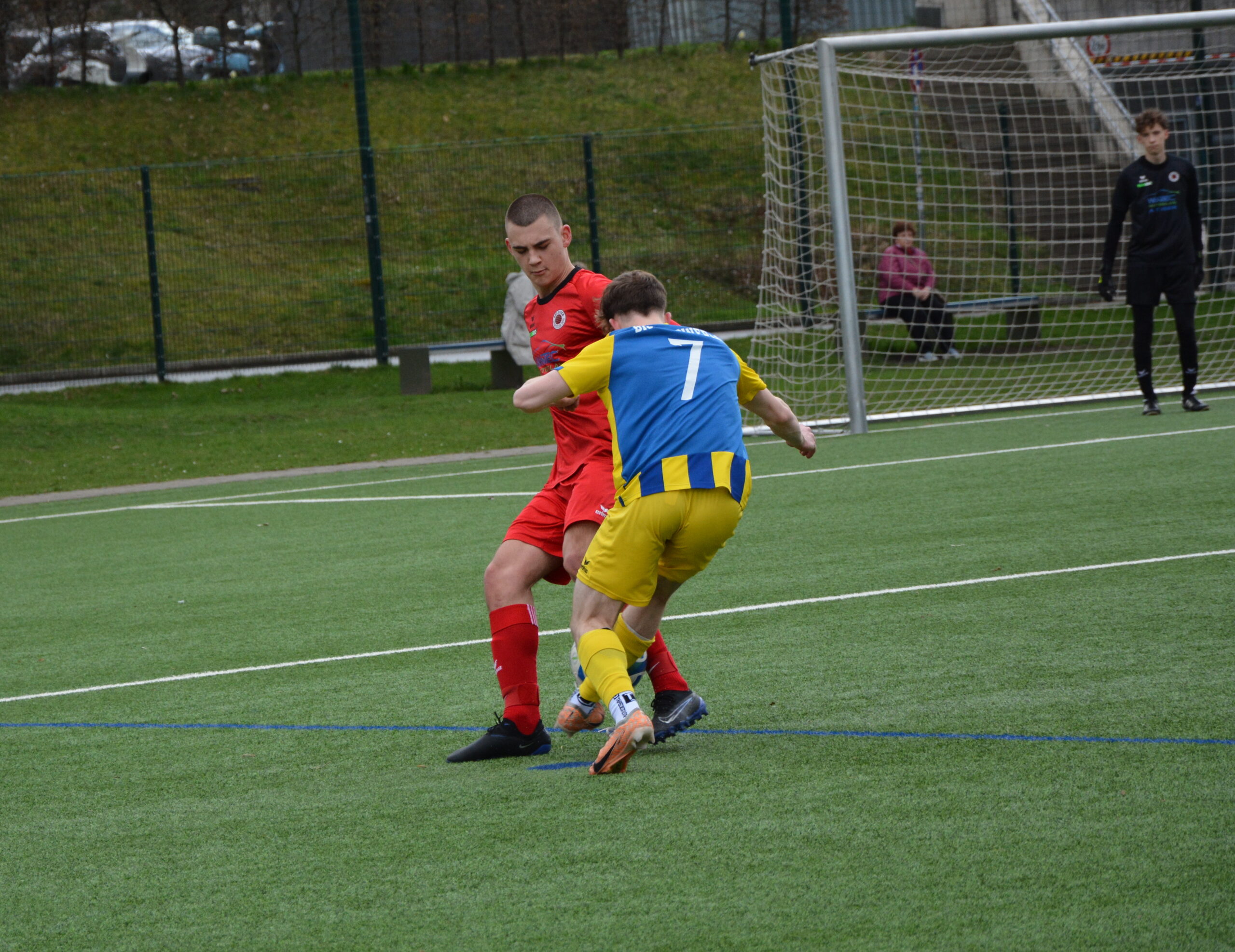 Die Schwarz-Roten sind von Anfang an voll im Spiel und holen schon nach wenigen Sekunden die erste Ecke heraus. Jack Svensson eröffnet den Torreigen in der 5.Minute. Eyouel Thiel zieht über die linke Seite in den Strafraum und legt den Ball quer auf Svensson welcher zum 1:0 vollendet. Kurz darauf landet ein langer Ball von Kapitän Max Bodechtel bei Valentin Frase. Dieser geht noch einige Meter allein auf das Tor zu, scheitert aber dann am Pfosten. Nach 12 Minuten erhöht Eyouel Thiel auf 2:0. Er wird im Strafraum schön angespielt und lässt sich diese Chance aus guter Position nicht nehmen. Keine 60 Sekunden später verwertet Theodor Achtnicht eine Flanke von der rechten Seite zum dritten Tor. Das 4:0 wird dann erneut über die rechte Seite vorbereitet. Nutznießer in der Mitte ist Thiel welcher zum zweiten Mal locker einschieben kann. Vincent Lepenies trifft mit einem Schuss aus 20 Metern zum 5:0 (22.). Mit dem Halbzeitpfiff legt der Sportclub den sechsten Treffer in dieser einseitigen Partie nach. Lennox Mechelke geht schön bis zur Grundlinie durch und passt überlegt in den Rückraum. Dort zieht Lennox Klötzer ab und trifft zum 6:0-Halbzeitstand.