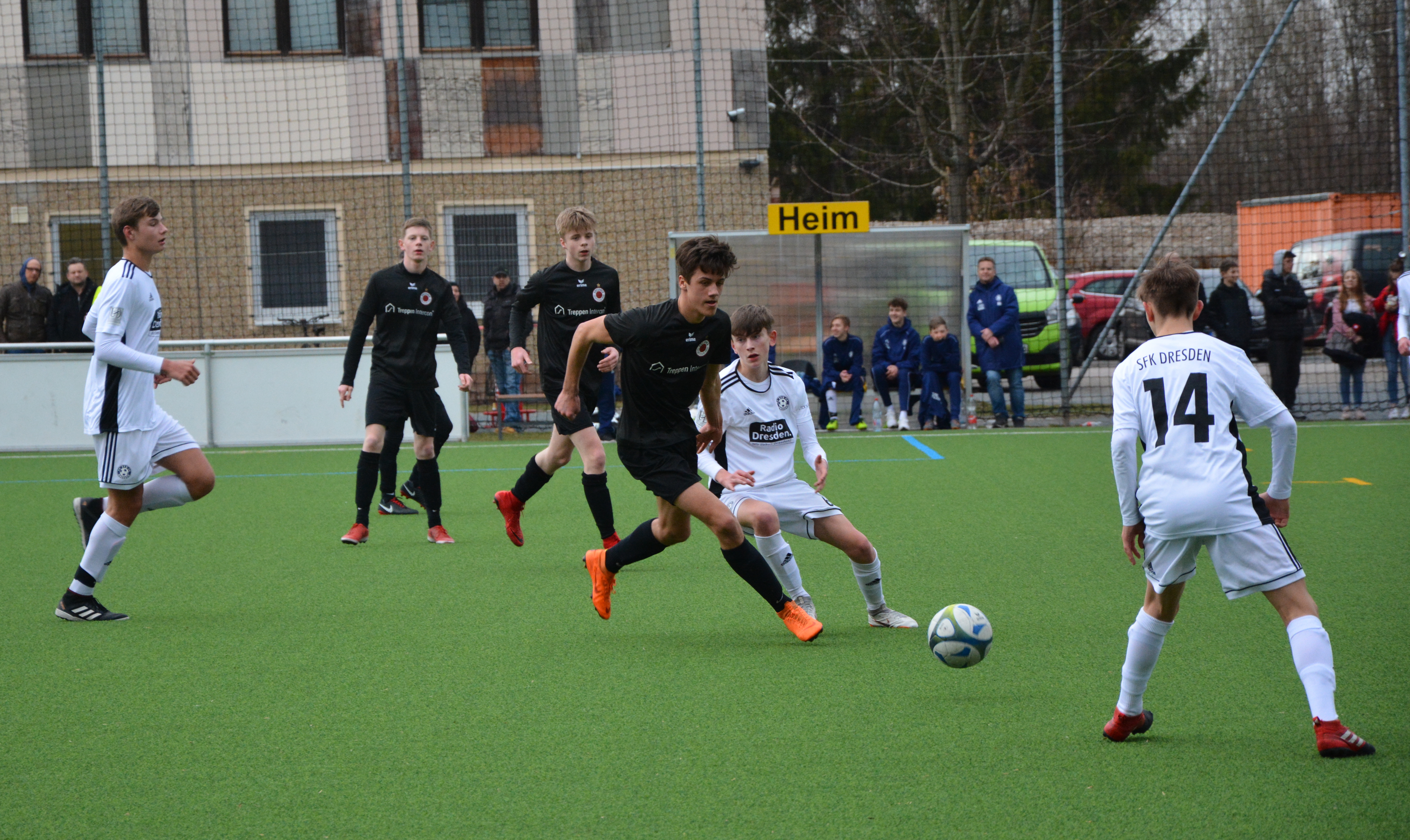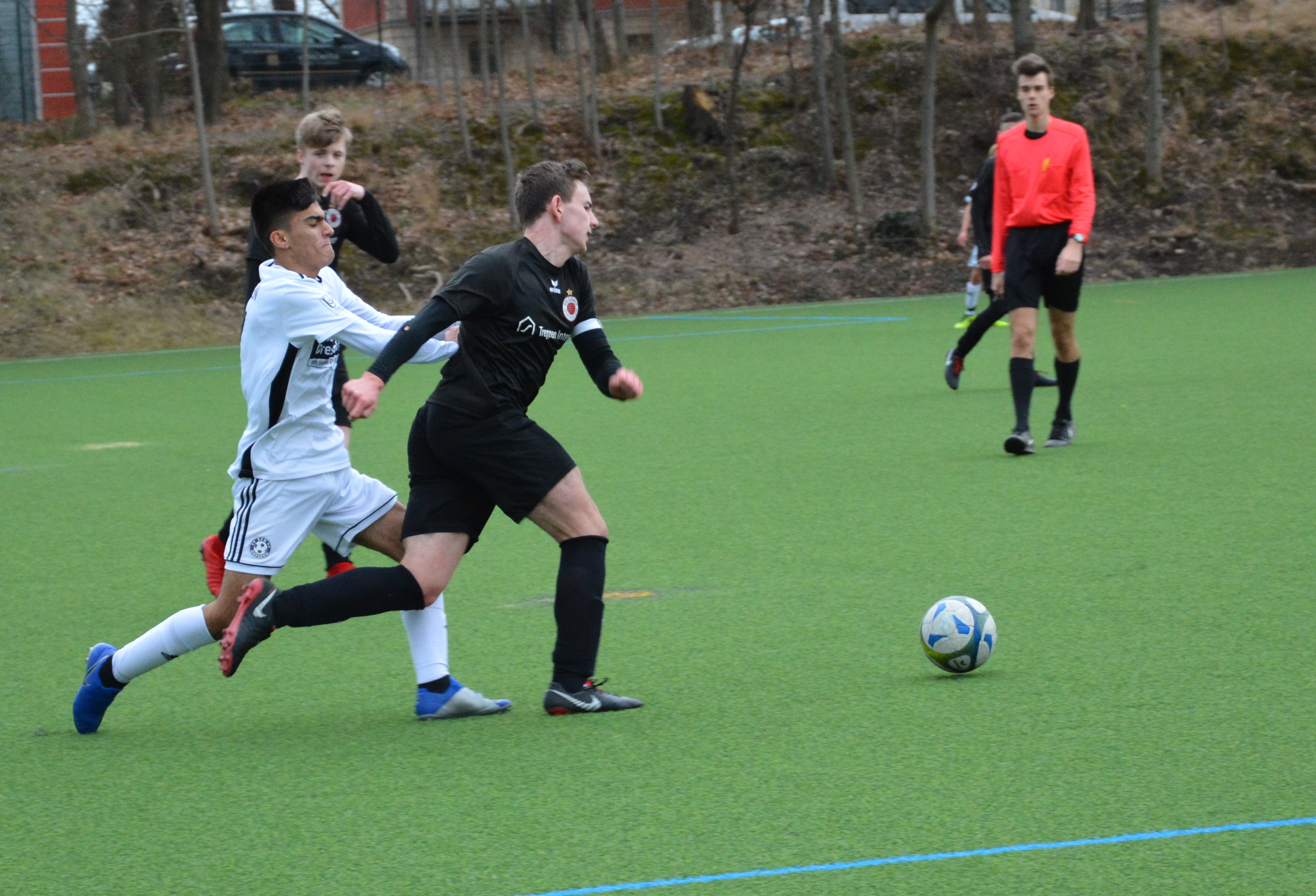In der zweiten Halbzeit hat der DSC etwas mehr Zugriff auf die Partie und so spielt sich das Geschehen größtenteils im Mittelfeld ab. Die Hausherren haben in der 51.min durch Finn Heidler per Freistoß aus knapp 25 Meter die nächste gute Möglichkeit. Sein Schuss landet allerdings nur an der Querlatte. Eine Viertelstunde vor Schluss zeigt sich der Sportclub nochmal in der Offensive. Zuerst kann der SFK-Torwart einen Fernschuss von Hans Bertholdt über die Latte lenken, nur zwei Minuten später ist er auch bei einem Schuss von Colin Berger auf dem Posten. Nach 70 Minuten wird ein individueller Fehler in der Abwehr des DSC wieder eiskalt zum vierten Treffer genutzt. Finn Heidler erobert einen Fehlpass und schiebt sicher zum 4:0 ein. Kurz vor Schluss kommt der eingewechselte Ayham Belkhier zum Abschluss, doch das Leder knallt nur an die Latte und somit bleibt dem Dresdner SC der Ehrentreffer verwehrt. Die B-Jugend hat nun drei Wochen spielfrei bevor es am 23.03. gegen den TSV Reichenberg-Boxdorf wieder um Punkte geht.