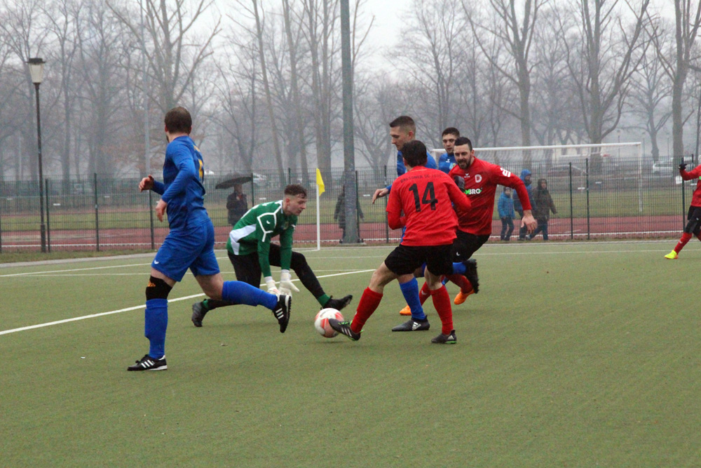 Bei durchgängig regnerischem Wetter und Temperaturen knapp über dem Nullpunkt sah es im Ostragehege lange Zeit nach einem Sieg für die Schwarz-Roten gegen Landesklässler FV Laubegast aus. Am Ende hieß es durch ein Tor in Unterzahl allerdings 1:1.